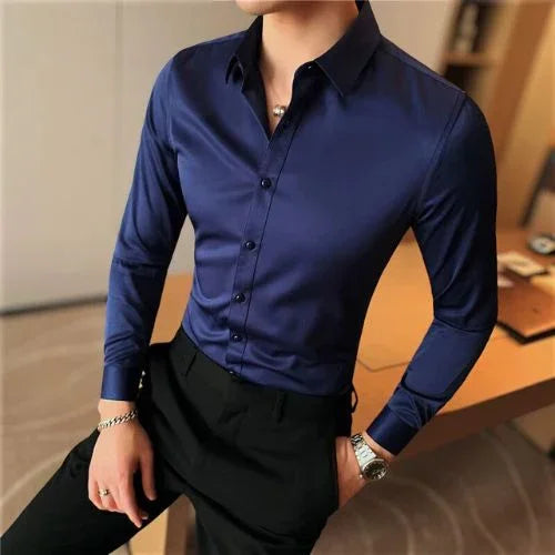 O corte moderno, aliado à gola dobrável e ao acabamento liso, traz um toque sutil de sofisticação que chama atenção de forma natural. Essa camisa veste bem, sem esforço — e transmite confiança em cada detalhe.