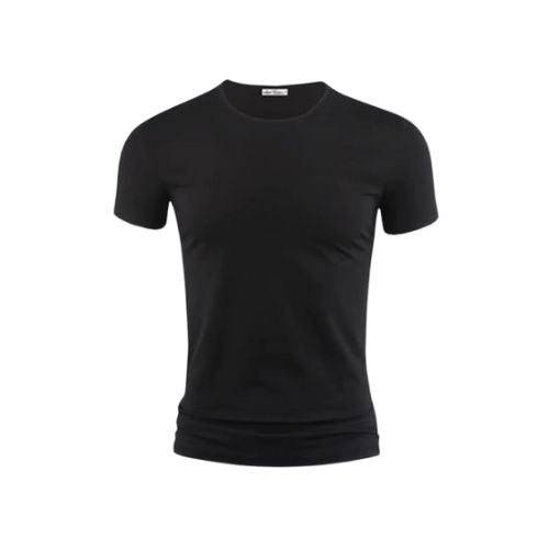 A gola arredondada traz um toque contemporâneo e discreto, enquanto as mangas curtas e a modelagem regular garantem liberdade sem perder o alinhamento. Ideal para quem busca um visual moderno, prático e elegante.