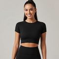 O design com mangas curtas cria um visual equilibrado entre esportivo e atual. Essa combinação permite que o top vá além da academia, compondo looks versáteis que valorizam seu estilo sem esforço.