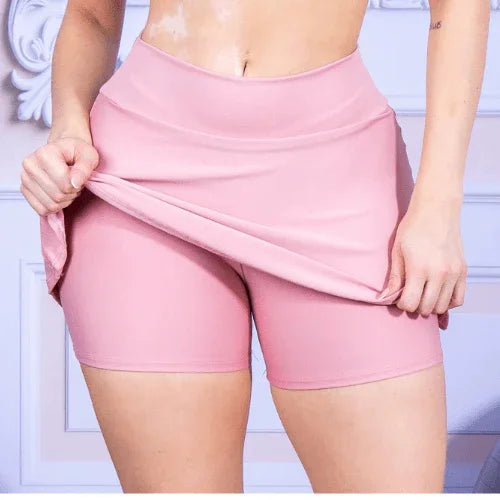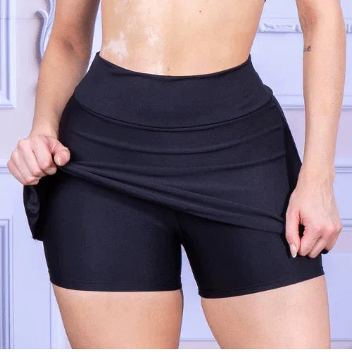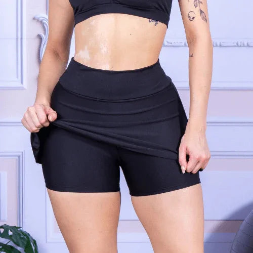 Com os shorts interno embutido, você tem a confiança que precisa para se movimentar sem preocupações, enquanto mantém uma dose sutil de sensualidade. Seja para exercícios ou looks casuais, o Shorts Skort EleganceFit© é a escolha ideal para quem quer estar confortável e elegante em todas as ocasiões.