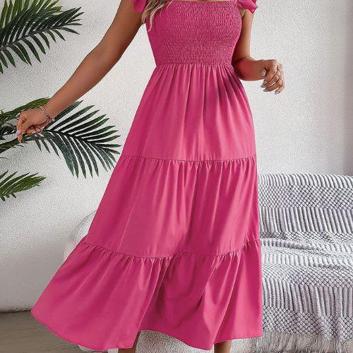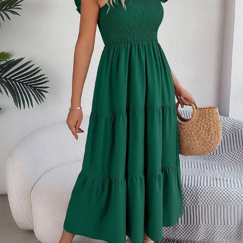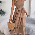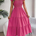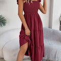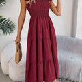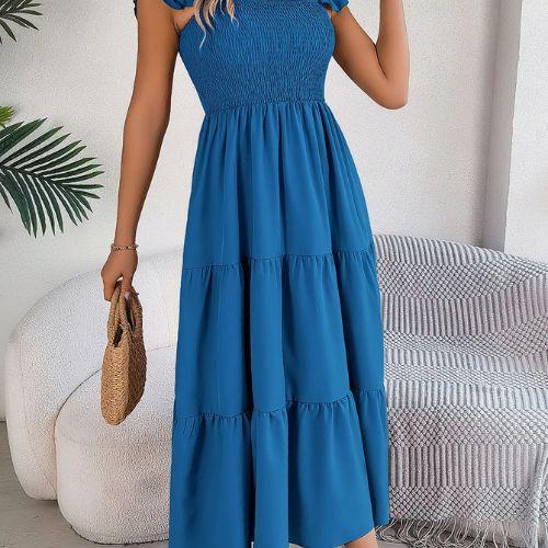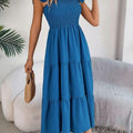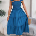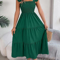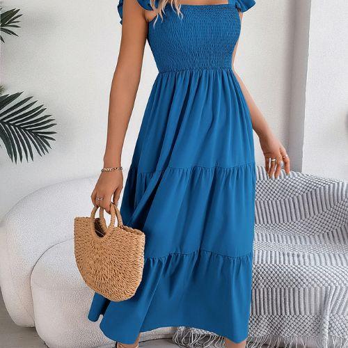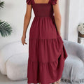 O design com decote quadrado e alças com babados transmite feminilidade na medida certa, valorizando os ombros e o colo com sofisticação. Um visual romântico, mas sem exageros — perfeito para momentos casuais ou ocasiões especiais ao ar livre.